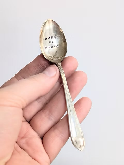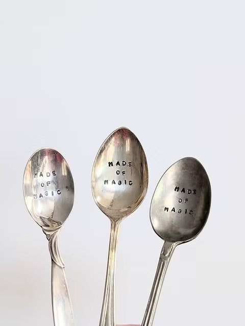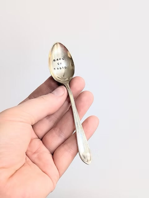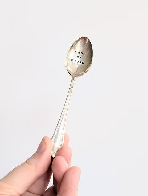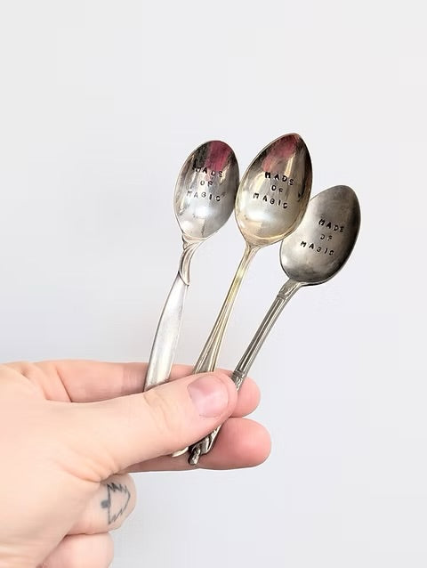 Each vintage spoon is hand-stamped with positive intention and will be intuitively chosen.