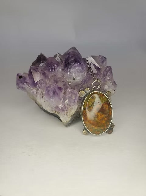 Ocean jasper set in recycled sterling silver with brass embellishments and gold lighting bolt.