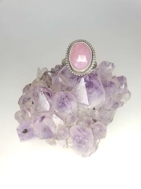 Pink Sapphire set in recycled sterling silver.