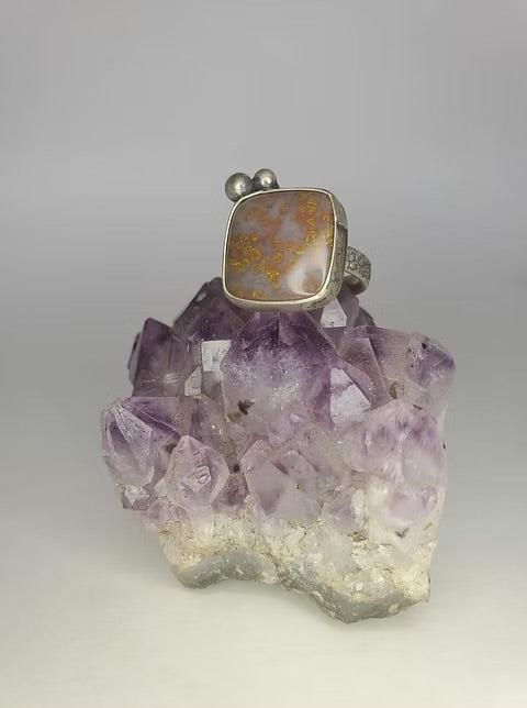 Ocean Jasper set in recycled sterling silver with a fancy band. Size 4.5